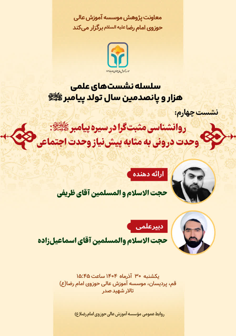 نشست چهارم:روانشناسی مثبتگرا در سیره پیامبر (ص): وحدت درونی به مثابه پیشنیاز وحدت اجتماعی